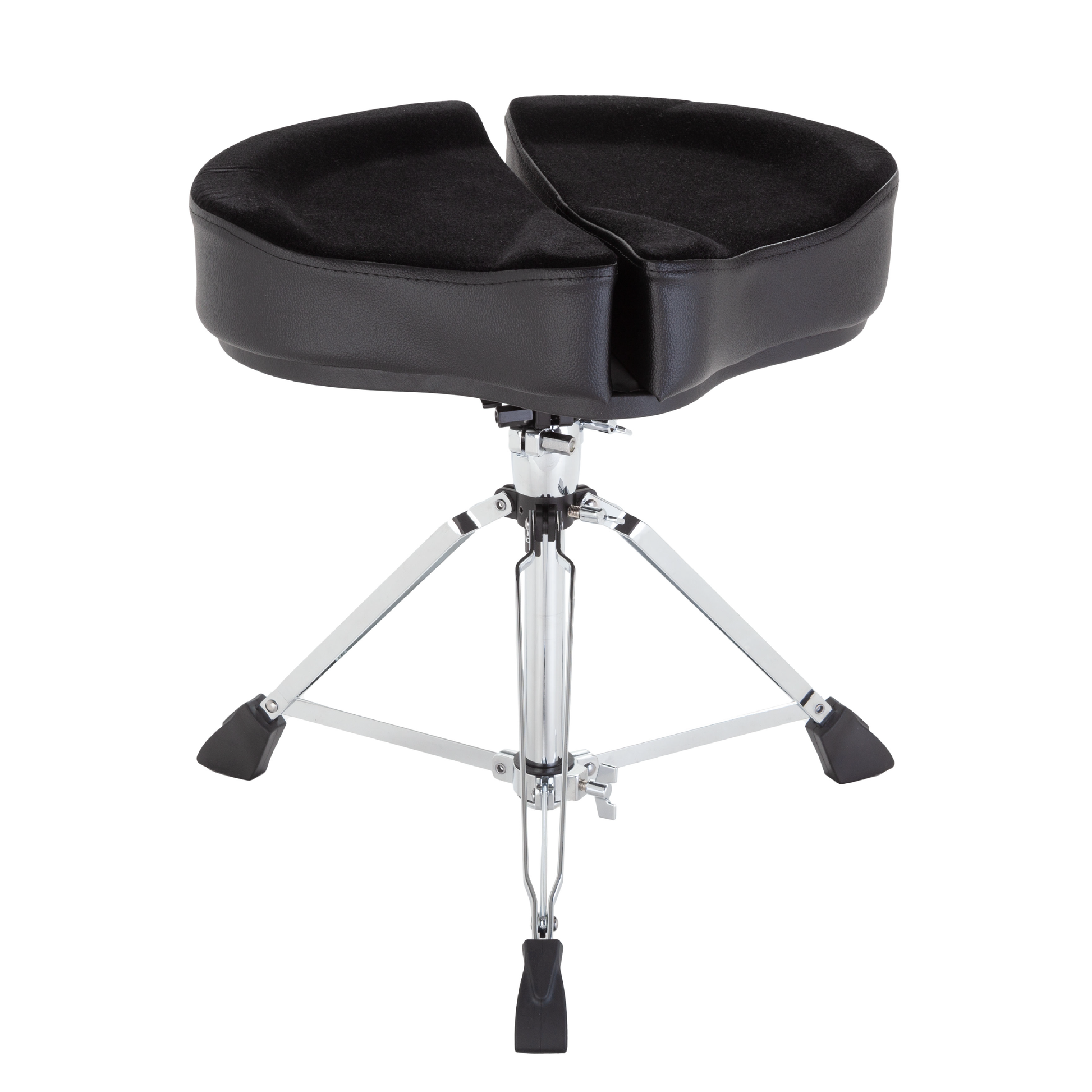 The Spinal Glide drum stool with two-part seat can save you from back pain while playing drums. The two halves of the seat are independently sprung, giving your lower back - where pain often occurs - more room to move. On this stool, your whole body is engaged in your drumming, and your back is relieved.