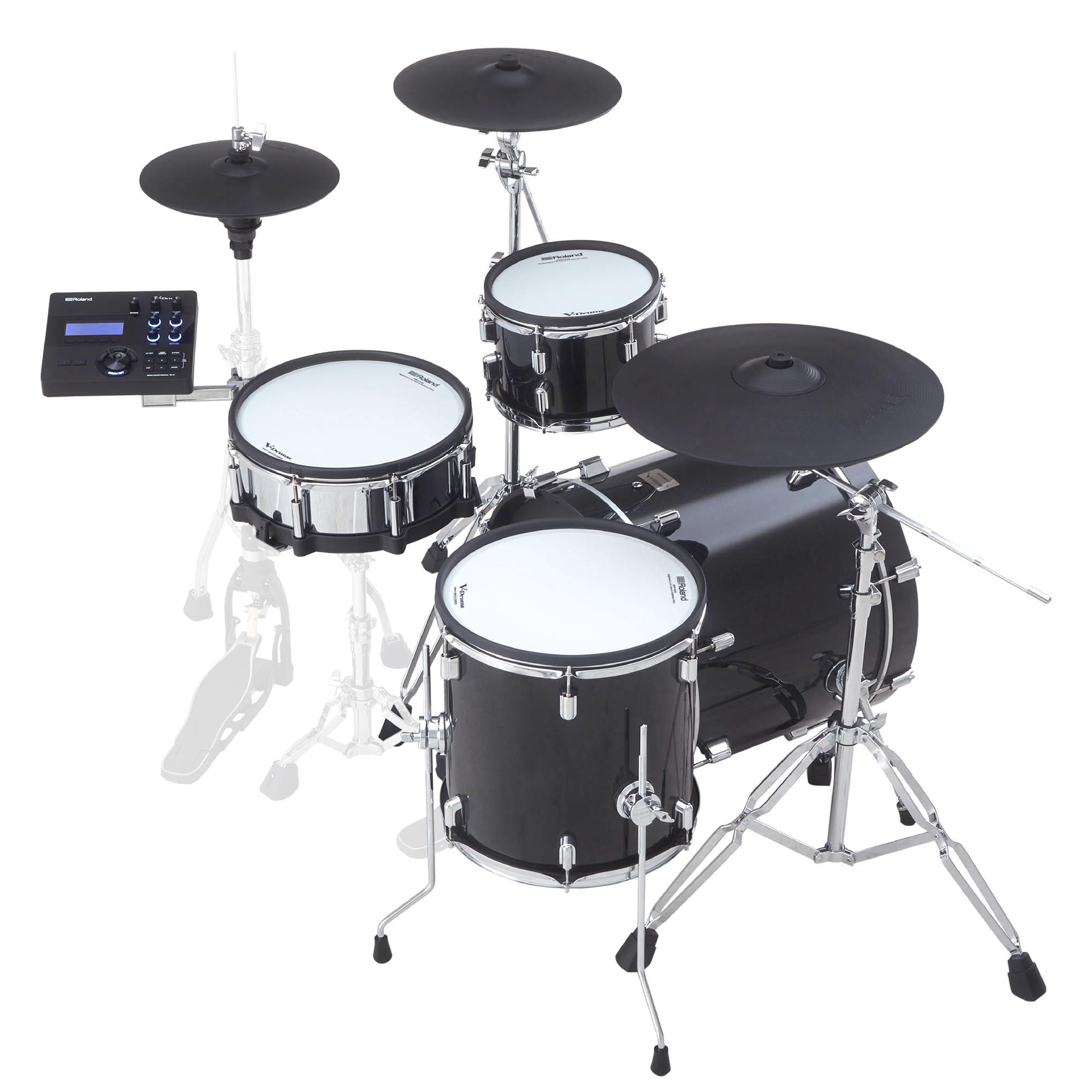 當您想要一套能在舞台上展現全尺寸傳統鼓的魅力和氣勢,又不失電子鼓的便利性和控制功能的套鼓時,VAD503 就是完美的解決方案。這套優質的套鼓配備全尺寸鼓身的木製鼓殼,精緻塗裝並安裝於雙支架鍍鉻鼓架,視覺上完全說服觀眾您正在演奏傳統鼓。Roland的先進數位感應器技術和富有動態的 TD-27 鼓音源機,則在聲音與反應提供了完美匹配的表現,確保每一個敲擊、裝飾音、輪鼓,和漸強敲奏都能不可思議地細膩完整表現。