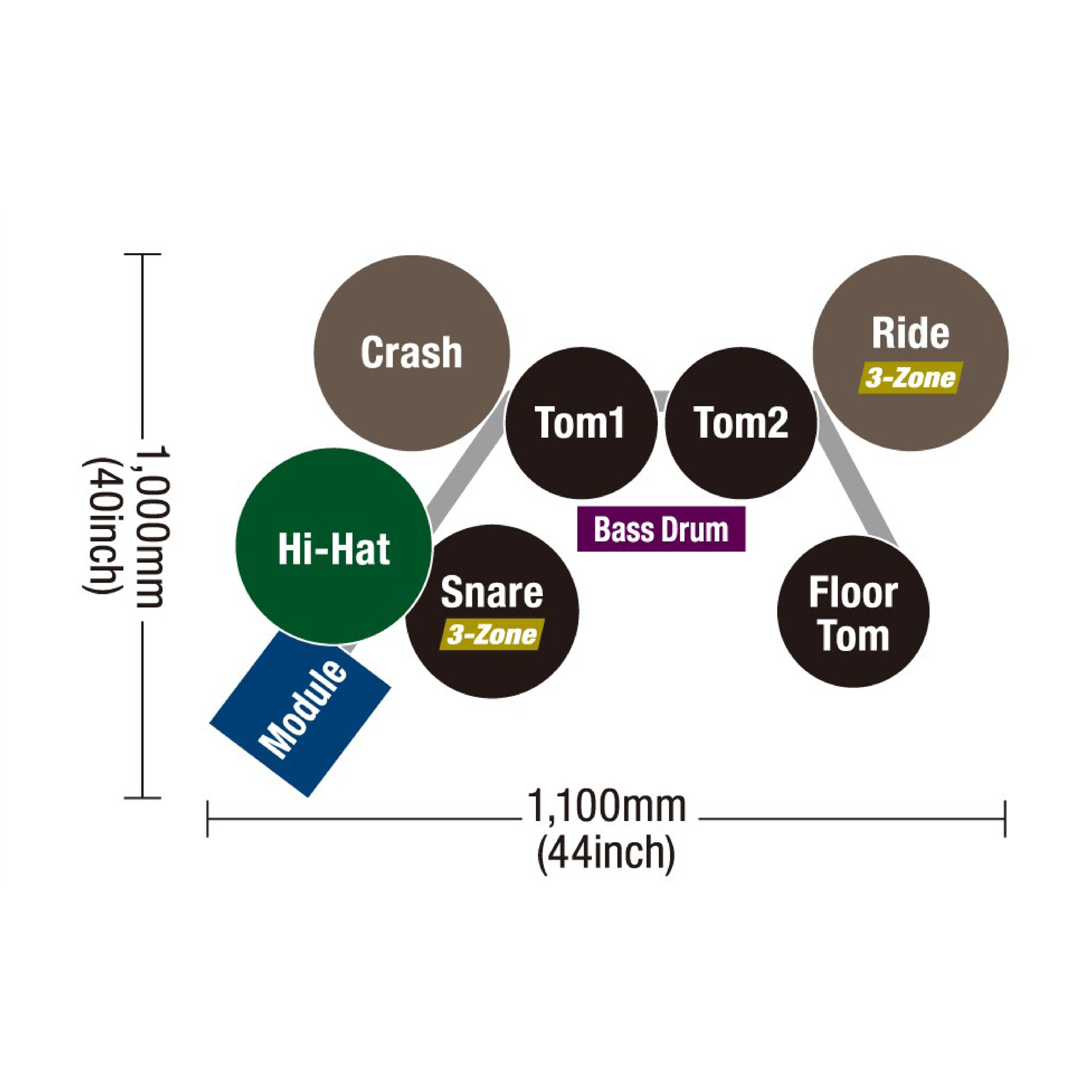 - 中音鼓 1,2 :TP70(7 英吋)橡膠單區感應打板